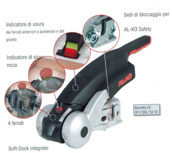 Tramite la leva di stabilizzazione, quattro speciali ferodi a sinistra, a destra, davanti e dietro agiscono sulla sfera del gancio di traino della vettura. La coppia frenante massima dei ferodi è pari a 320 Nm. I movimenti di oscillazione o beccheggio vengono pertanto efficacemente eliminati sul nascere. Le leve di accoppiamento e di stabilizzazione sono separate e possono essere azionate entrambe con una sola mano. Non sono necessari ulteriori meccanismi aggiuntivi di sicurezza. Per agevolare le manovre del rimorchio può essere semplicemente aperta la leva di stabilizzazione.