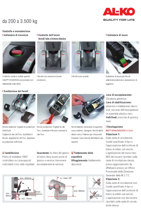 portata da kg. 200 fino a kg. 3000 – carico d’appoggio kg. 150 – massa minima kg. 200