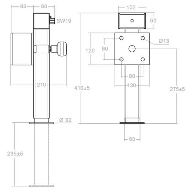 Supporto girevole : distanza fori di fissaggio 80×80 mm, diametro fori di fissaggio 12 mm