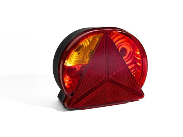 fanale posteriore dx con catadiottro triangolare (posizione, stop, direzione) – L=mm. 175, H=mm. 145, P=mm. 75, interasse fori mm. 70