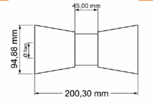 Ø foro mm. 21 – per perno da mm. 20 – rivestimento in gomma con anima in ferro -mm. 200,3×94,88