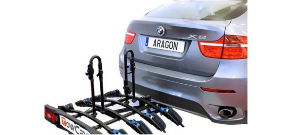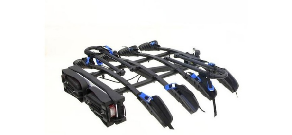 Portabiciclette per quattro biciclette con antifurto per biciclette e portabiciclette.